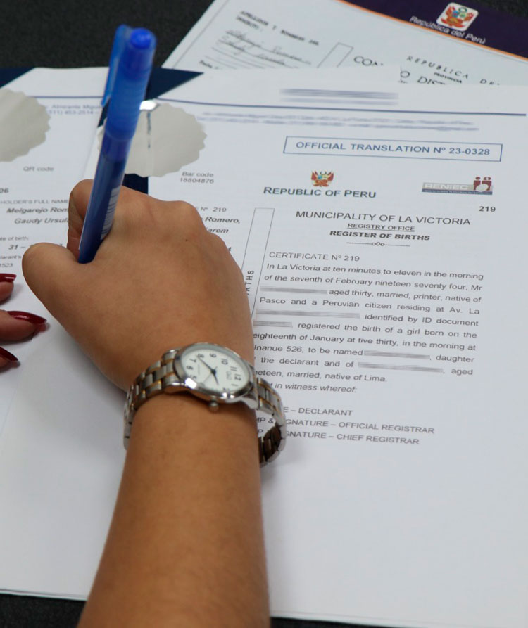 La Traducción Oficial es realizada por un Traductor Público Juramentado, quien está autorizado y registrado ante el Ministerio de Relaciones Exteriores. Este servicio se realiza para trámites tanto a nivel nacional como internacional.